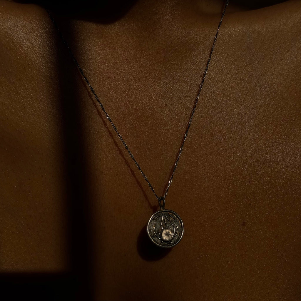 A one-of-a-kind lotus talisman handcrafted in Bali from recycled 925 sterling silver. Each petal has been shaped and soldered by hand before being intentionally oxidised to reveal depth and contrast within the detailing.